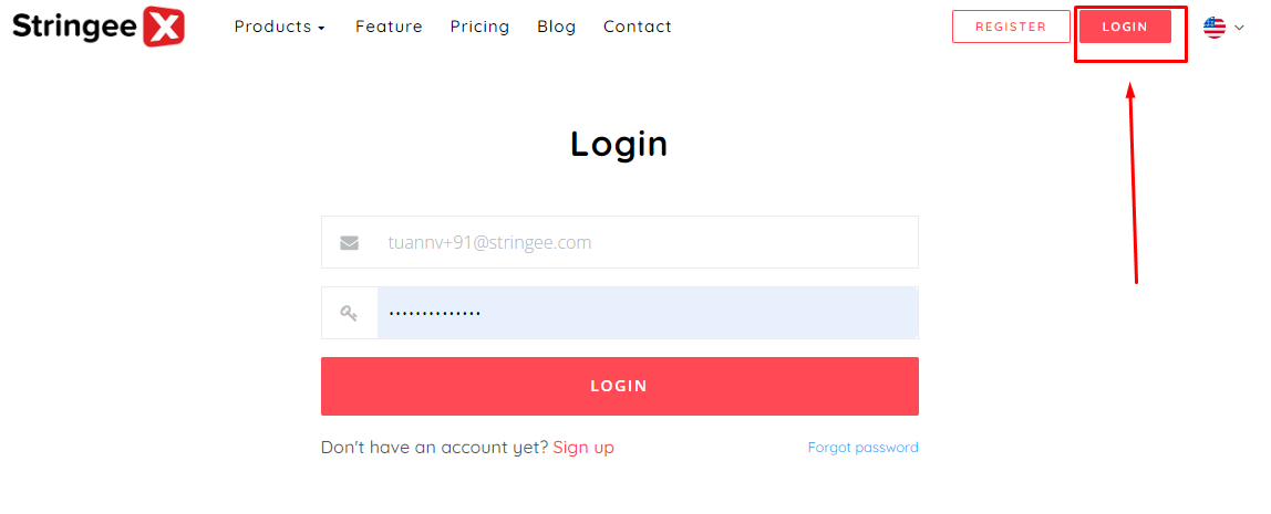 Note: The registered email is not case sensitive. When logging into StringeeX, the system will process uppercase characters to lowercase characters.