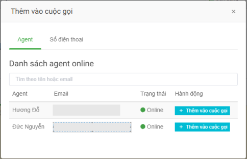 Phone number: The system makes a call from the business hotline to the personal mobile number (assuming the mobile number of an agent C). While the agent C does not received the call, the agent A and the client continue to talk normally. When the agent C receives the call, the call is concurrently conversing with 3 parties (agent A, agent C, customer). Agent enters the phone number and clicks "Add phone number" to complete the process.