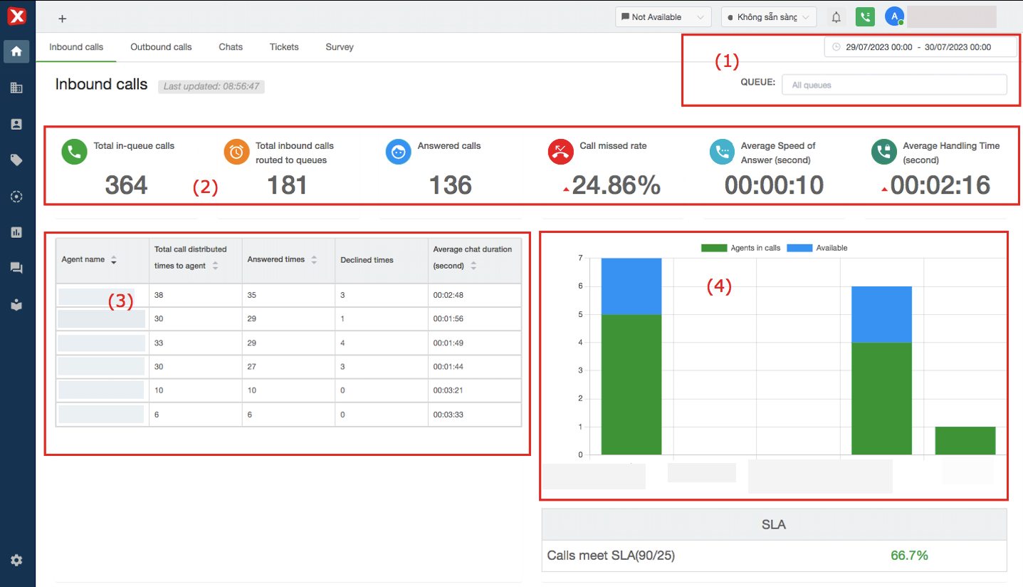 Note: Total call distributed times are different from the number of calls. A call will have multiple rings for different agents to ensure the highest meeting rate. Therefore, the Total call distributed times (sum of all agents) will be greater than or equal to the total number of calls to the queue.