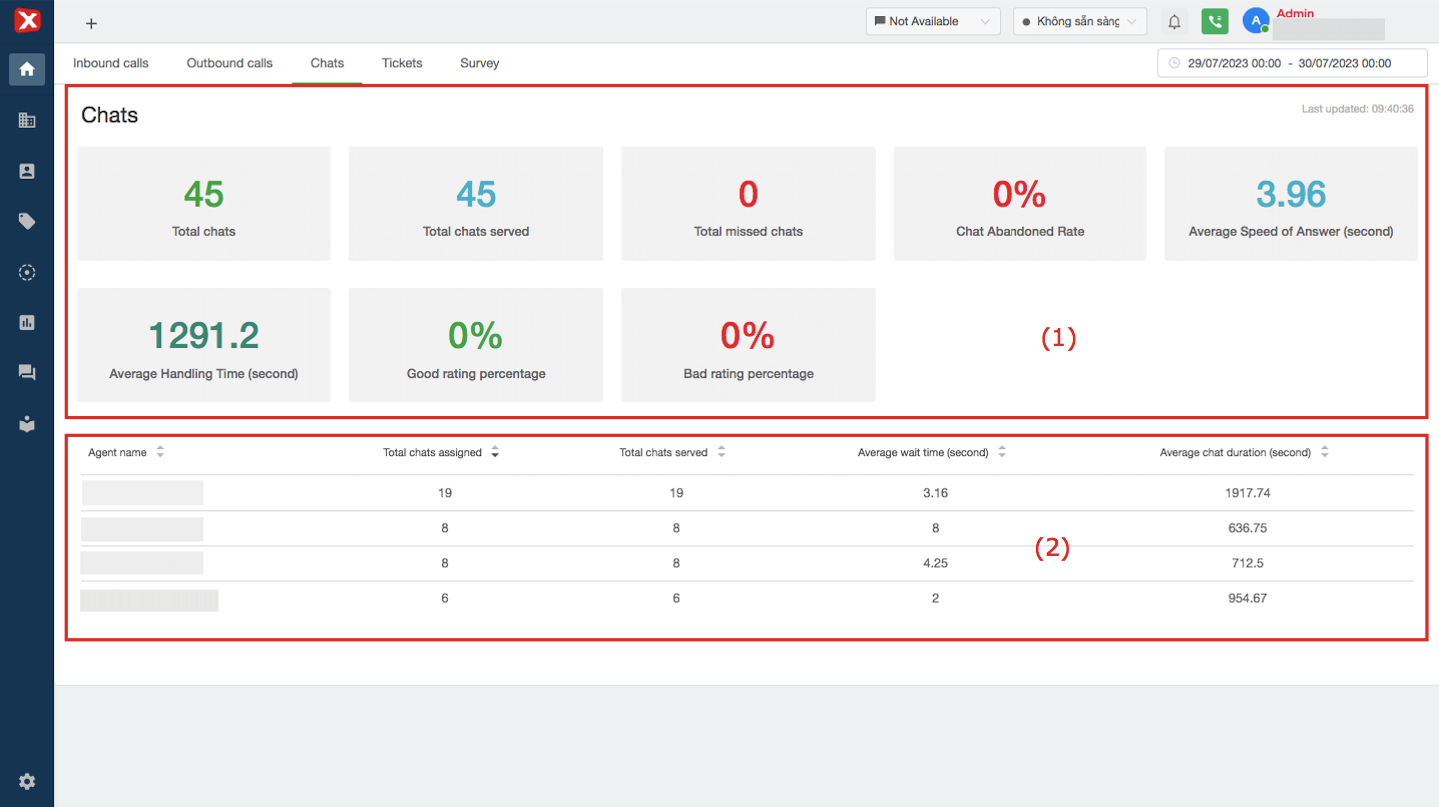 ### (2) Chat performance statistics by agent