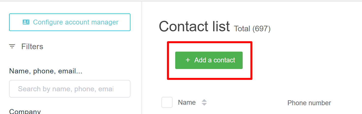 Users click on “Add a contact” in the contact management interface to create a new contact manually: