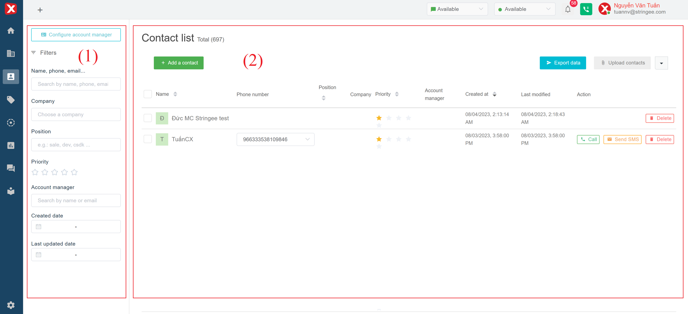 StringeeX supports advanced features Account manager configuration, supports new employees to manage contacts and tickets of old employees through the Contact interface.