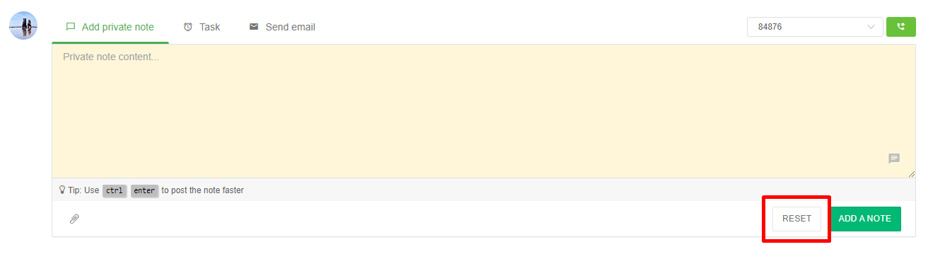 * **Reset notes:** In each entry of internal notes, tasks, and emailing, there will be an option to reset. When the user chooses to reset, all current content and actions will be deleted.