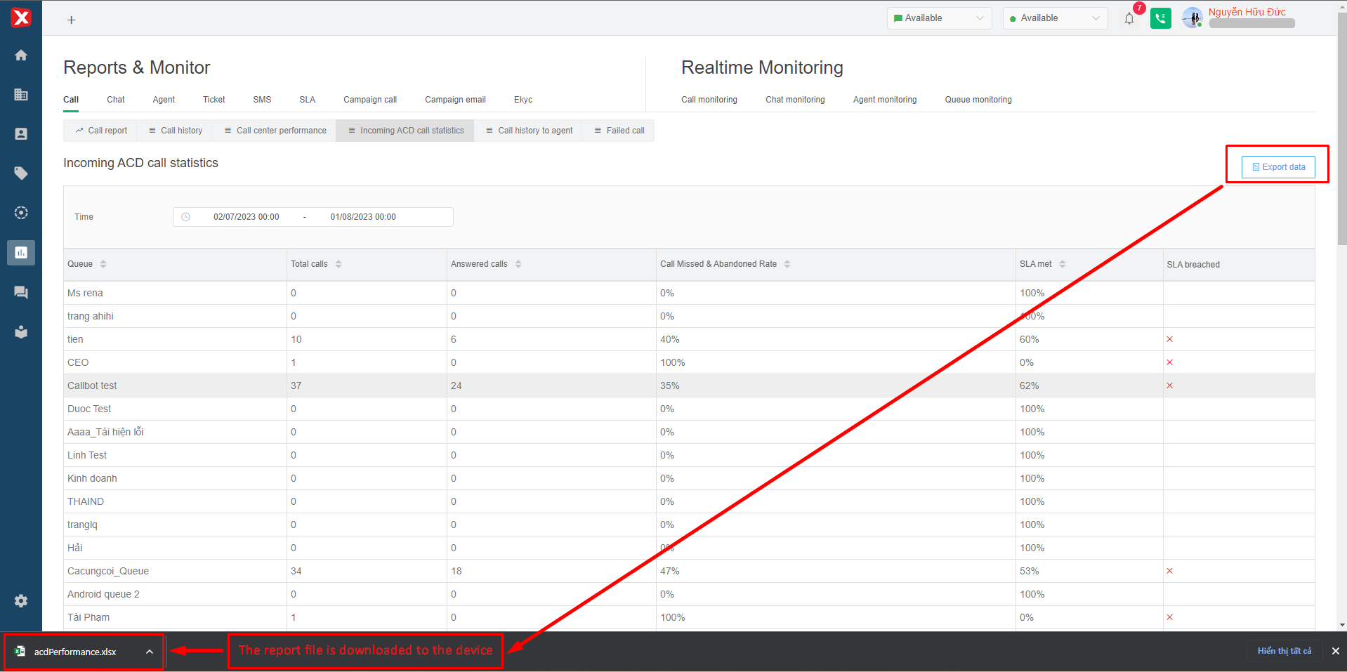 <figure><img src="https://content.gitbook.com/content/W1nWhVvoi55dxT8euy3M/blobs/GYxkD6z81rw175Bi92Ws/image.png" alt=""><figcaption><p>Image 3: Export the ACD performance report</p></figcaption></figure>
