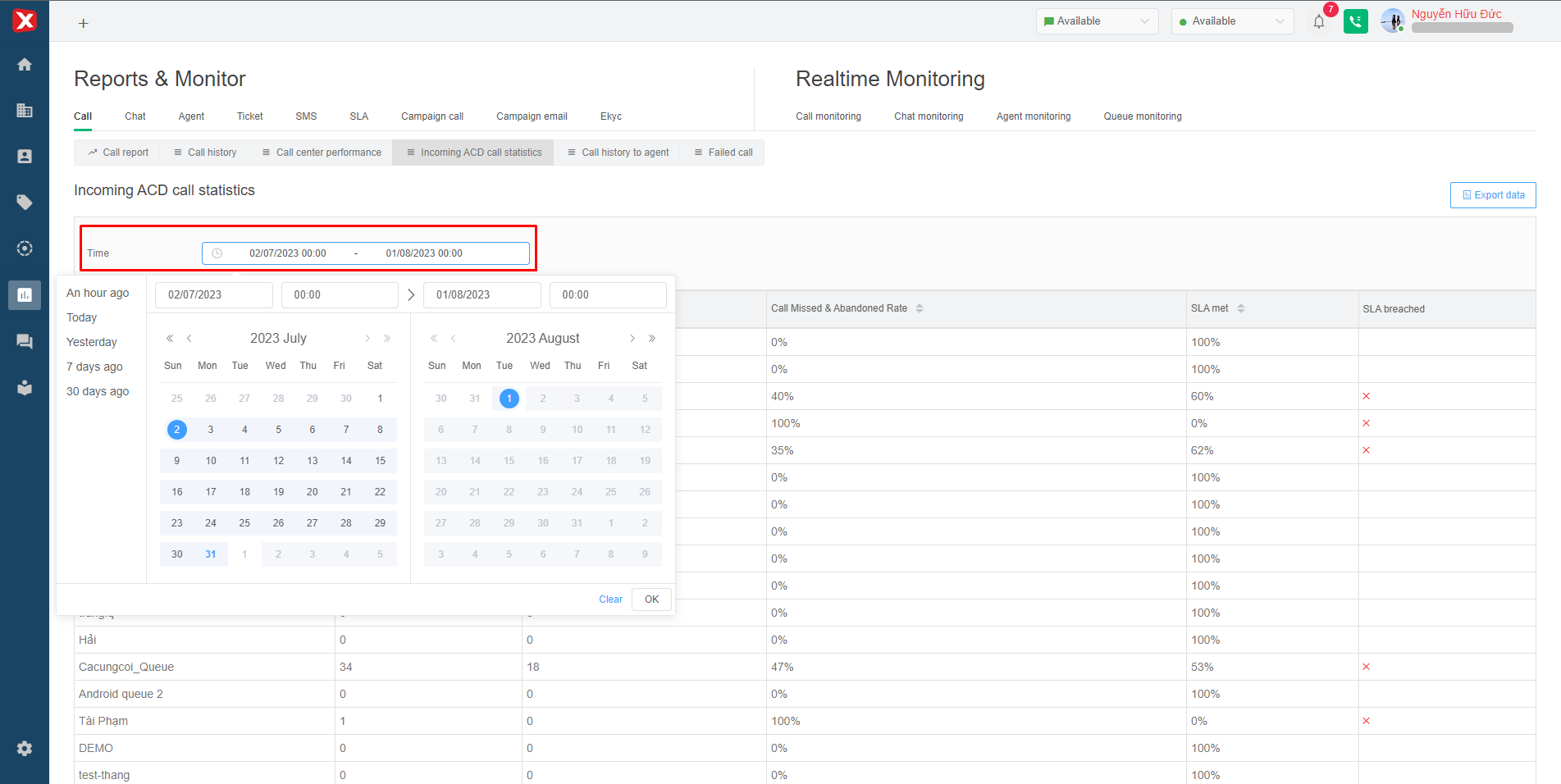 <figure><img src="https://content.gitbook.com/content/W1nWhVvoi55dxT8euy3M/blobs/a9YDkGqepnoStFChj5Av/image.png" alt=""><figcaption><p>Image 2: ACD performance reporting filter by time</p></figcaption></figure>