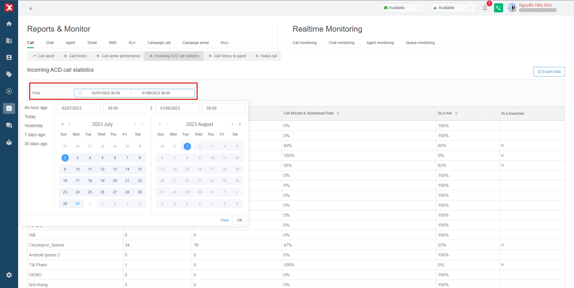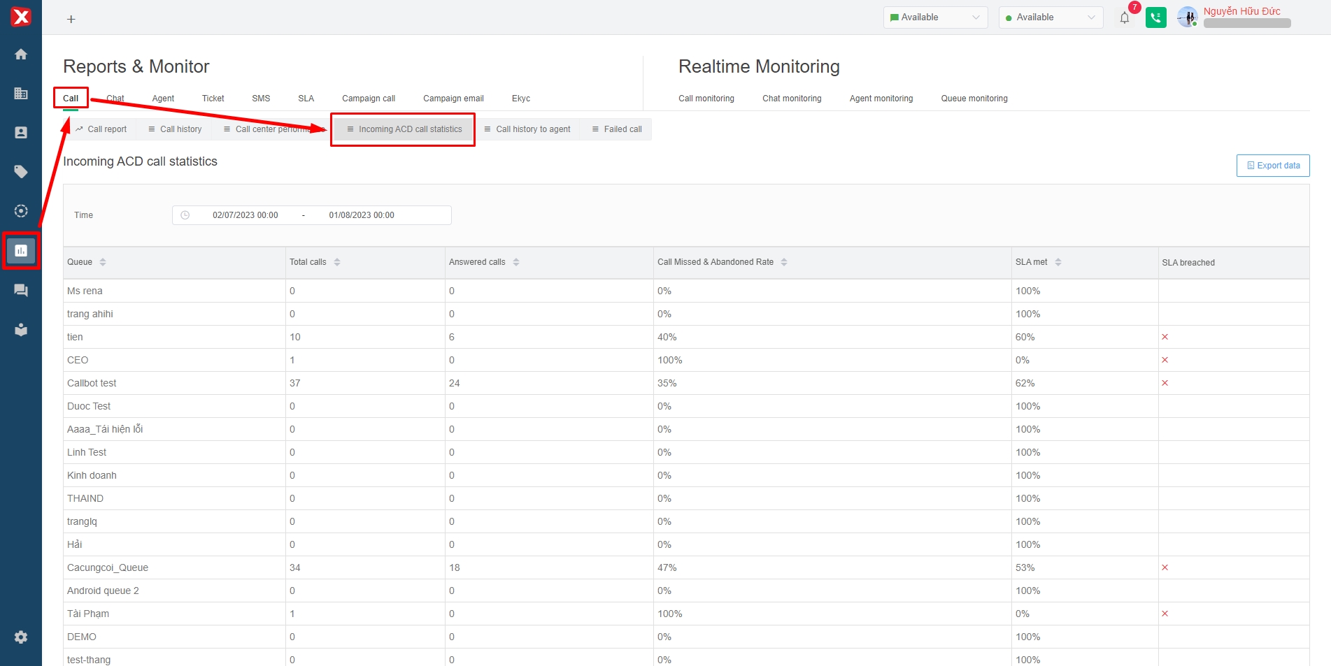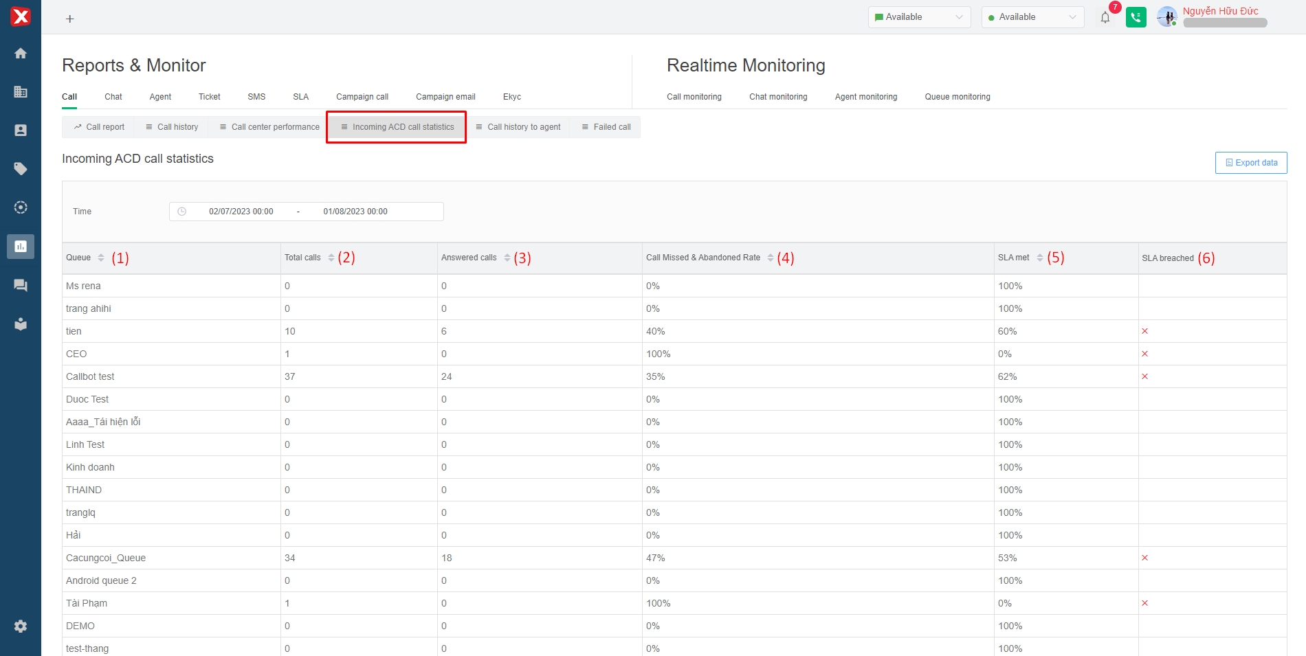 (6) SLA violation: If the queue does not reach the set SLA rate at the queue, it will be marked with a red “x”.