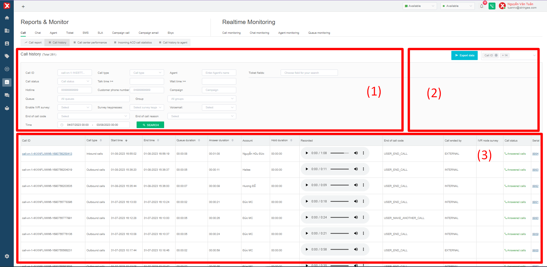 Agent: the name of the agent (the agent) assigned on the call, who makes an outbound call or receives an inbound call.