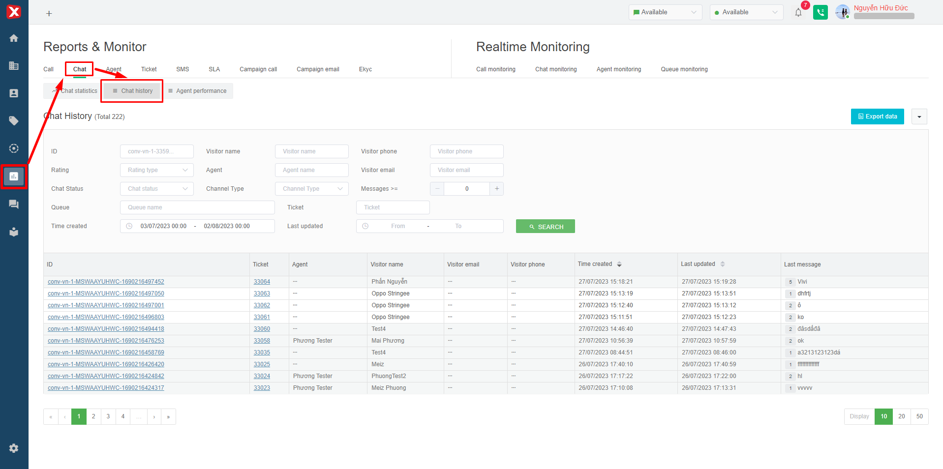 The chat history report filter will help users monitor conveniently, evaluate and classify chats as they like.