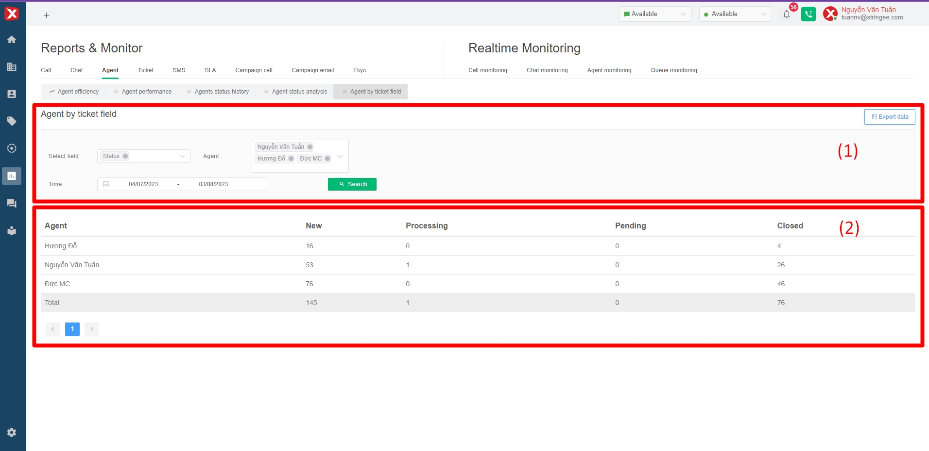 Closed: số lượng phiếu ghi của agent tương ứng đang ở trạng thái đóng