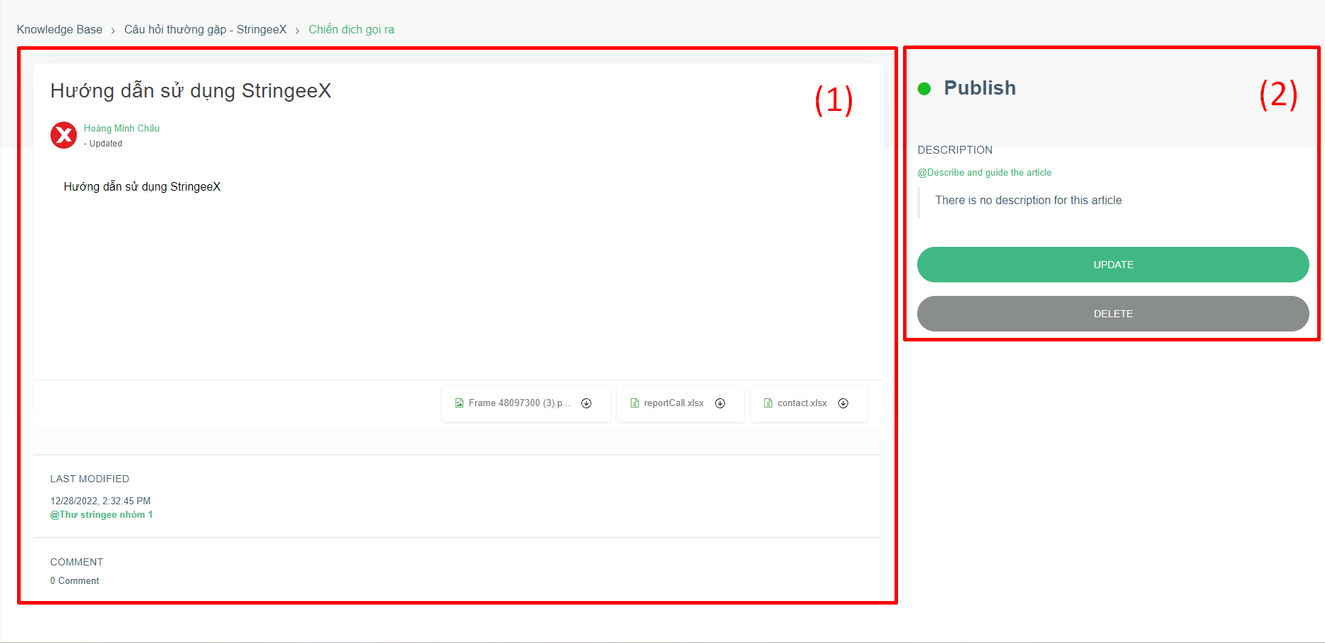 * **Edit article:** users with permission to manage ([learn more](https://help.stringeex.com/stringeex-tong-dai-cham-soc-and-quan-ly-khach-hang/en/9.-settings/9.9-knowledge-base#tao-the-loai)) the post can edit the post.