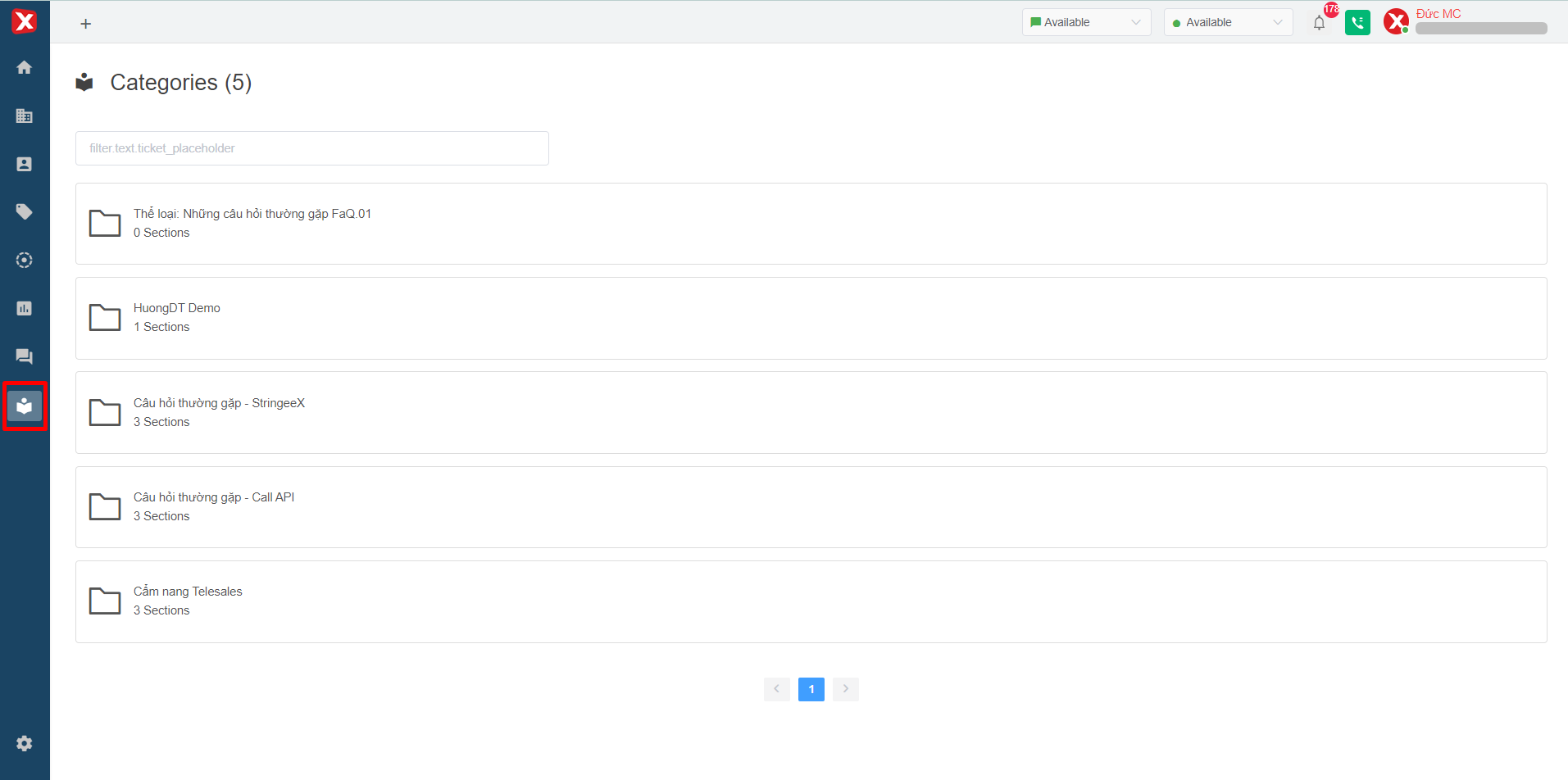 In the first interface of the Knowledge base, users can view a list of categories.