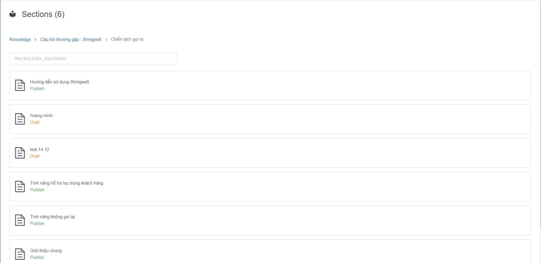 The knowledge base is a place for users on the system to view internal documents depending on the role permissions. Here, users will update the latest internal information, learn the necessary information or use instructions for the necessary item on the system, etc.