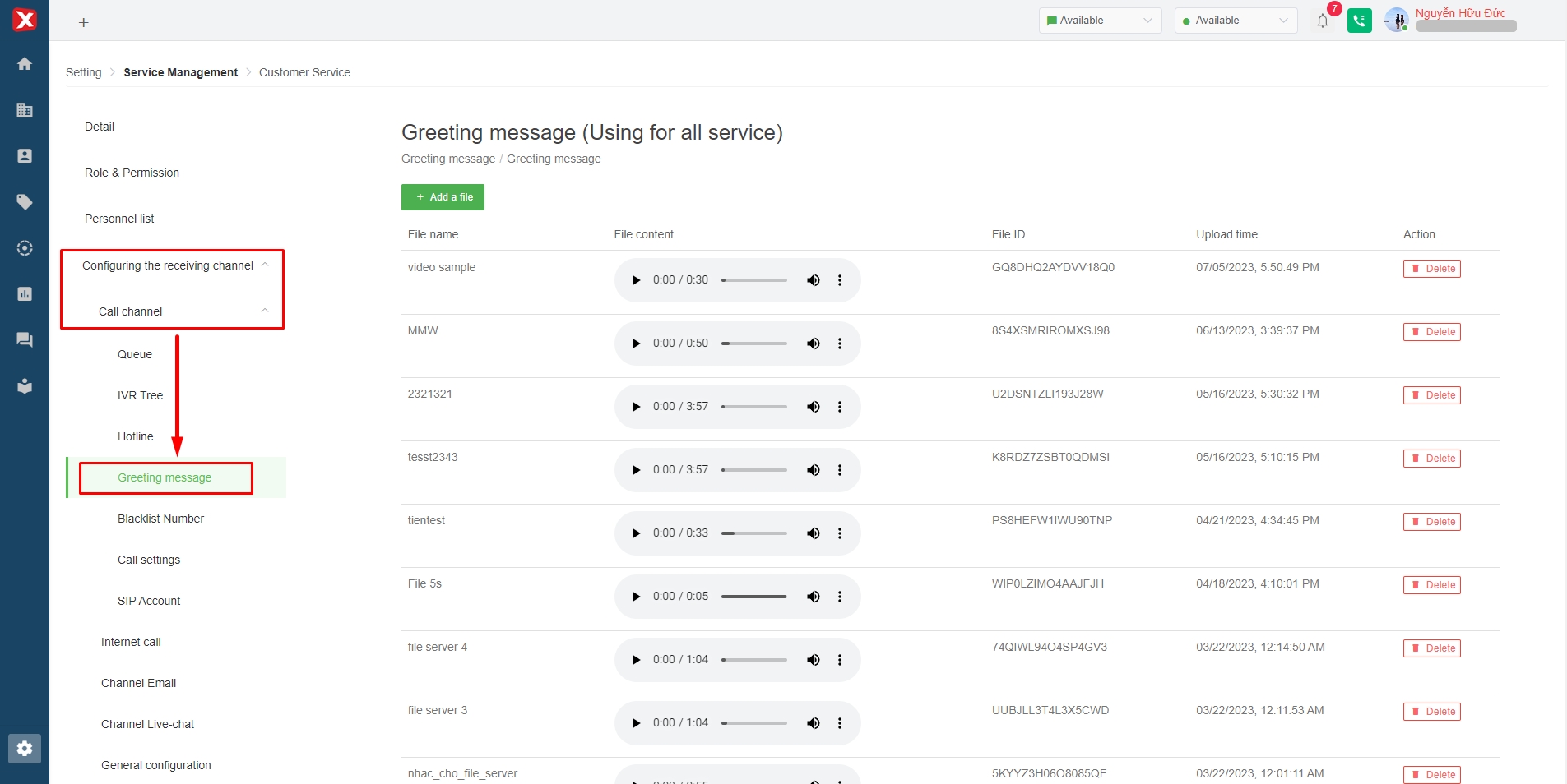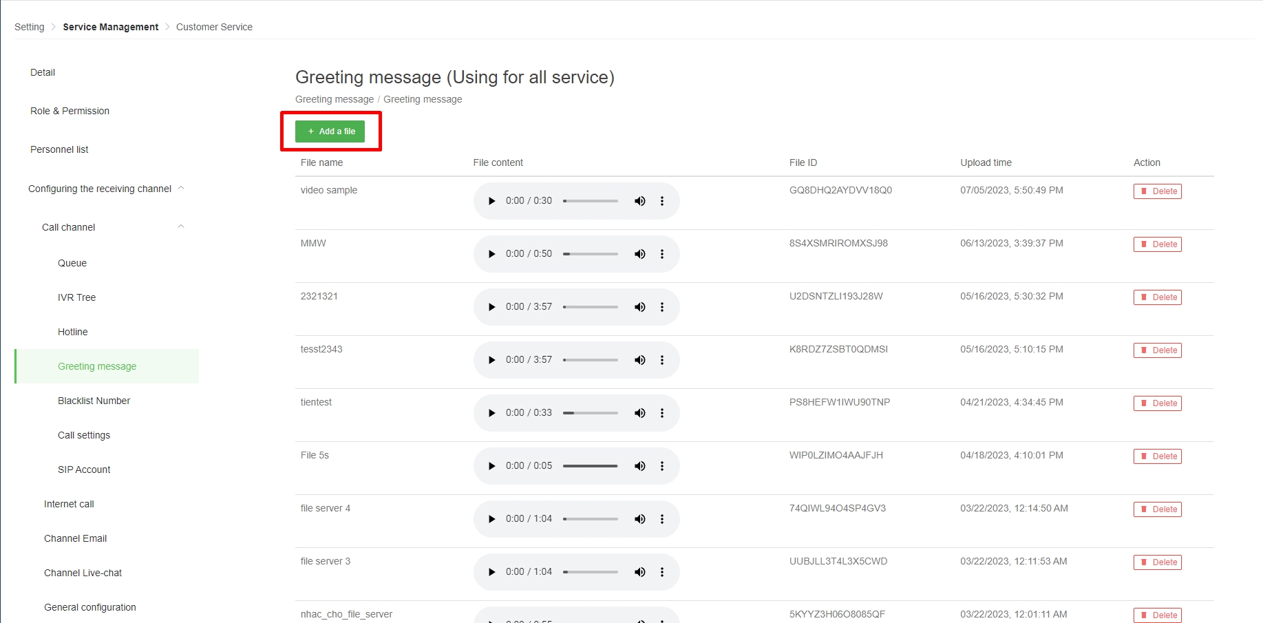 Note: The greeting file on the system only supports 2 file formats, "mp3" or "wav".