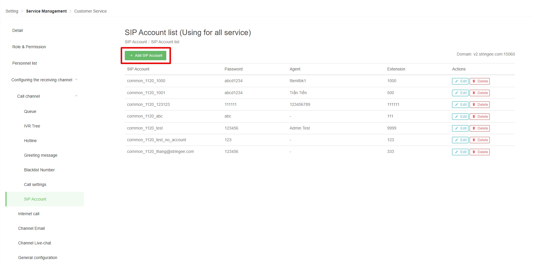 SIP account is used to connect user accounts on Stringee with IP Phone (deskphone: fanvil, yealink, ...) or Softphone software (Zoiper, ..), CRM (Misa, Hubspot, 1Office, etc.).