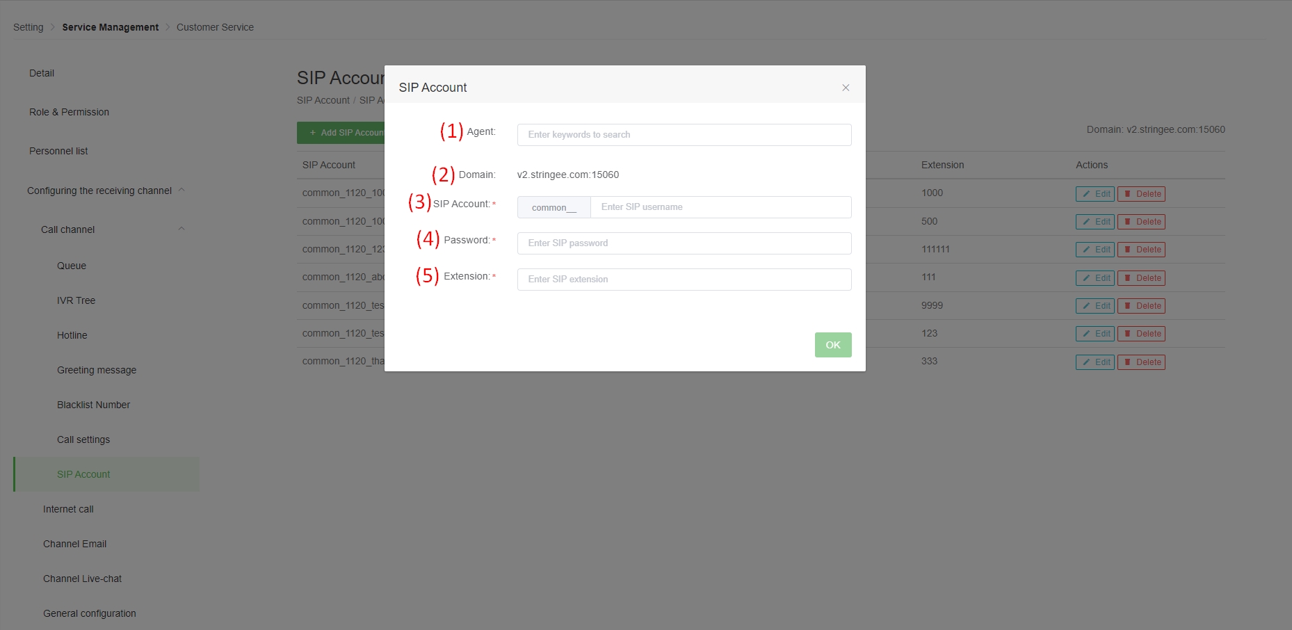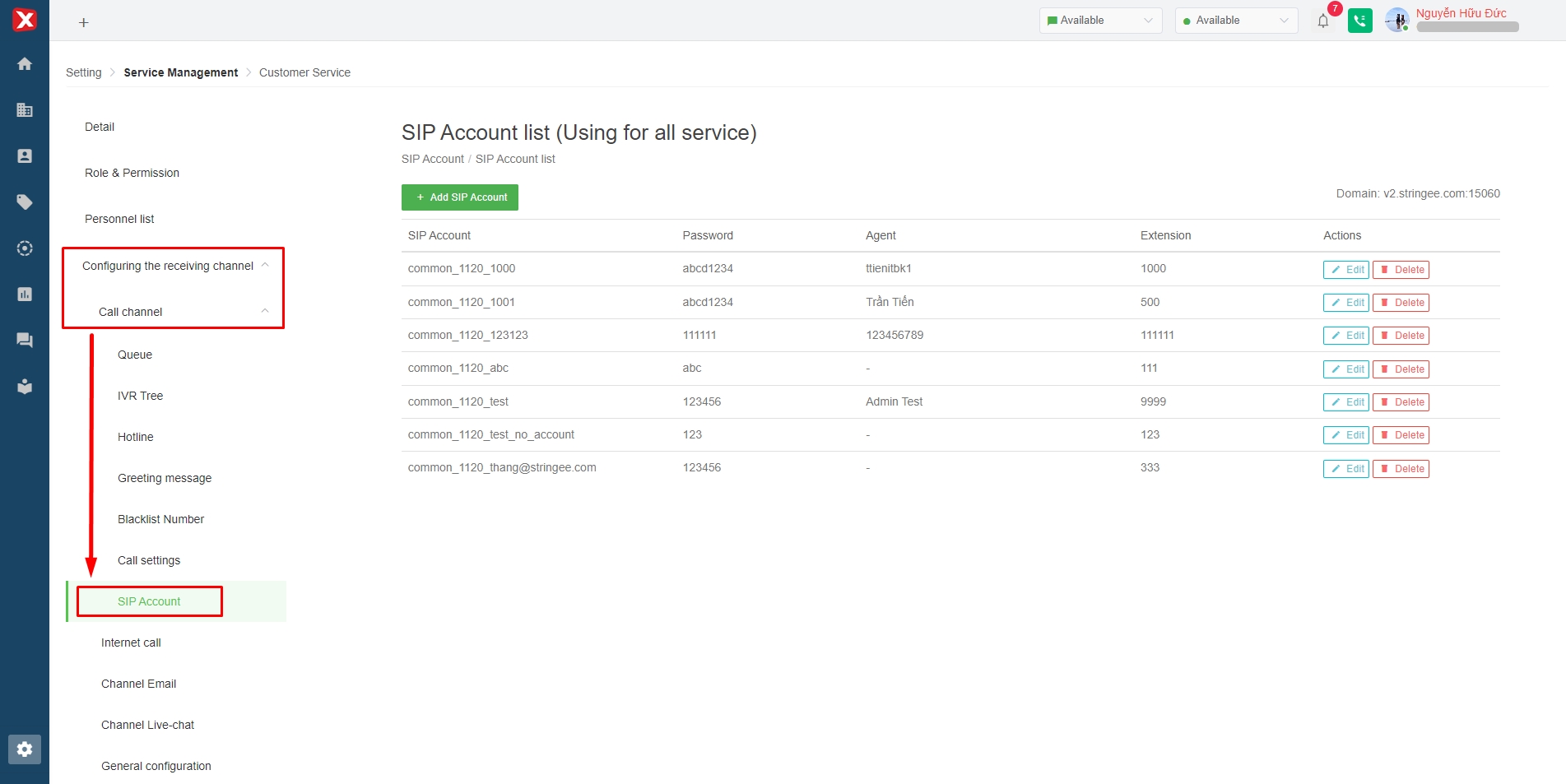 (2) Domain: system default will be “sip-register-india.stringee.com:5262”.