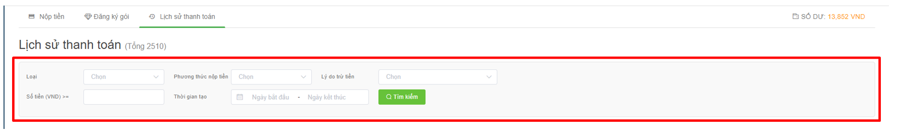 Here users can query and look up all paid transactions on the Stringee system.