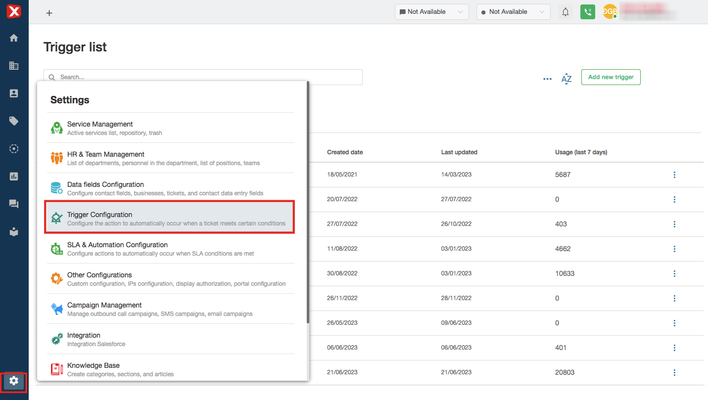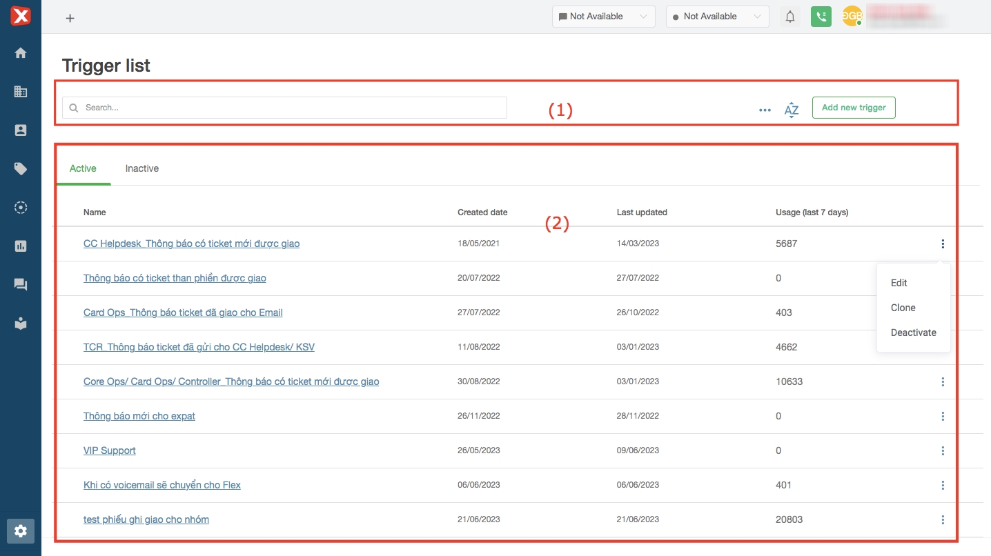 Deactivate: disable the trigger. Triggers that are disabled will be displayed in the “Inactivate” tab.