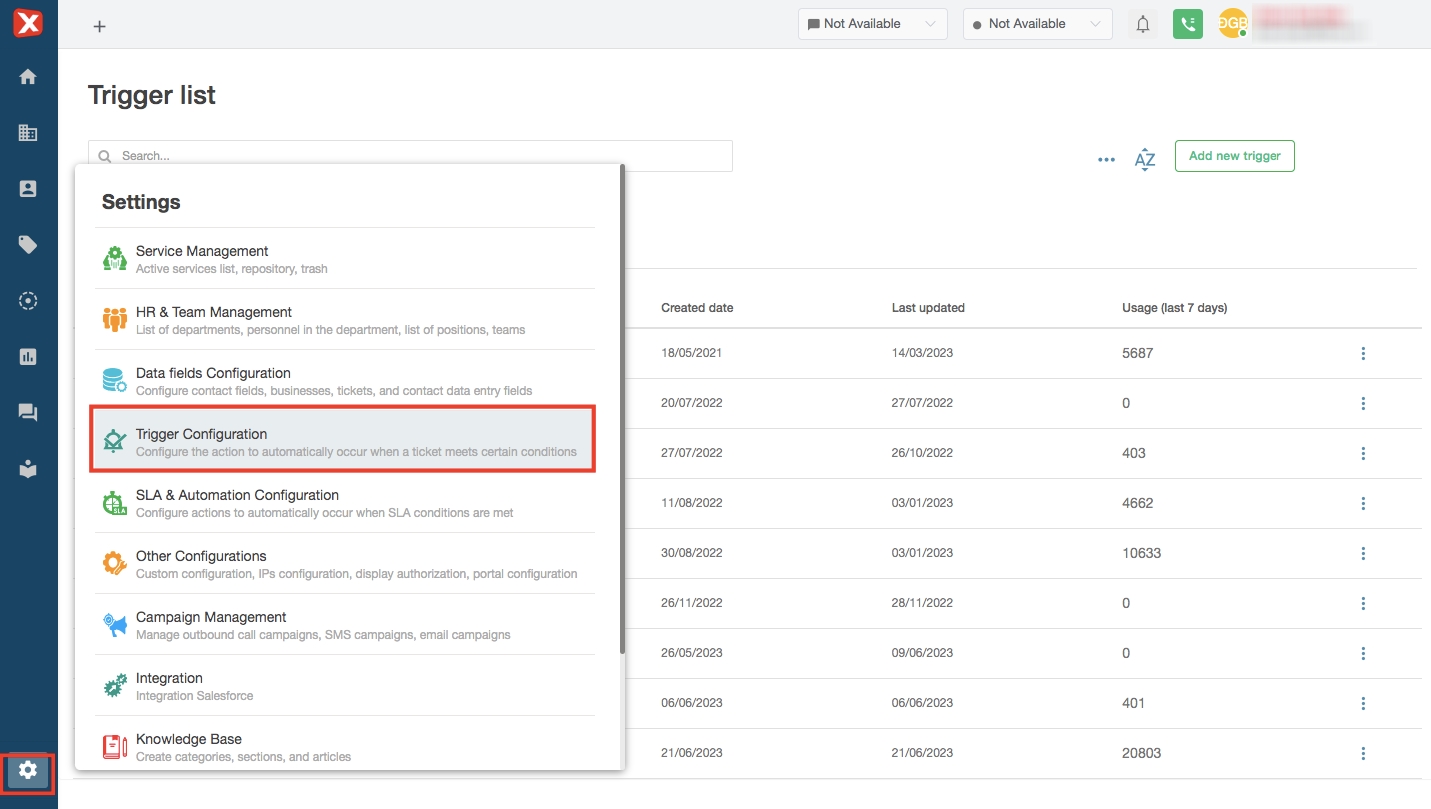 Add new Trigger: admin creates a new trigger. Newly created Trigger defaults to Enabled status