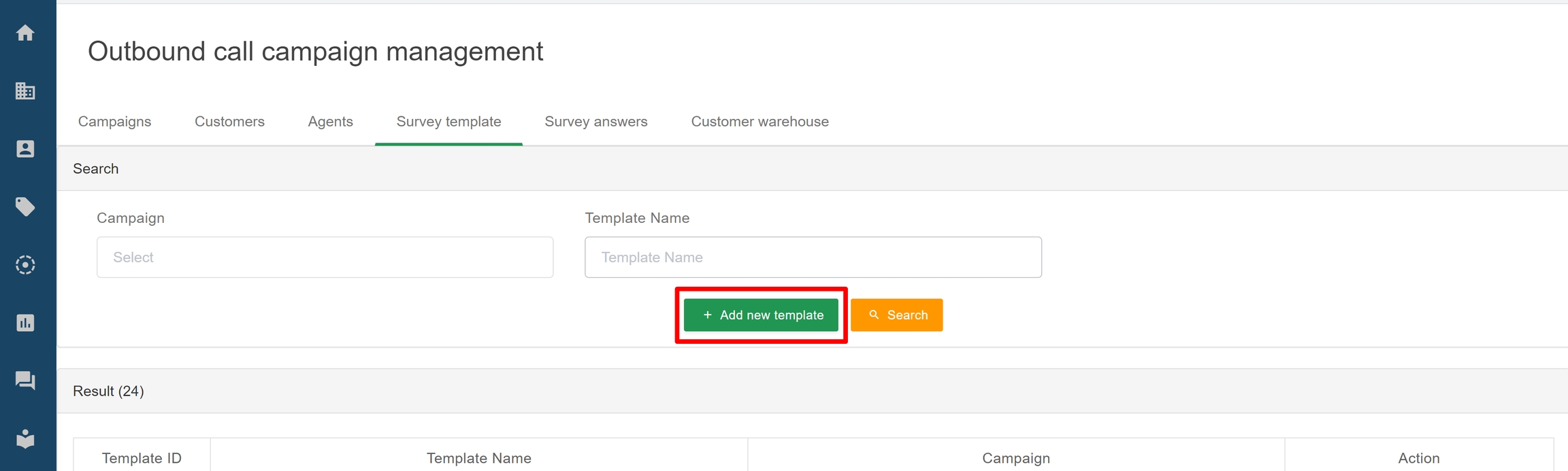 Interface of survey template list
