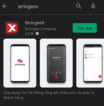 * **Step 1:** Download APP. The user enters CHPLAY on device, searches for “StringeeX”: