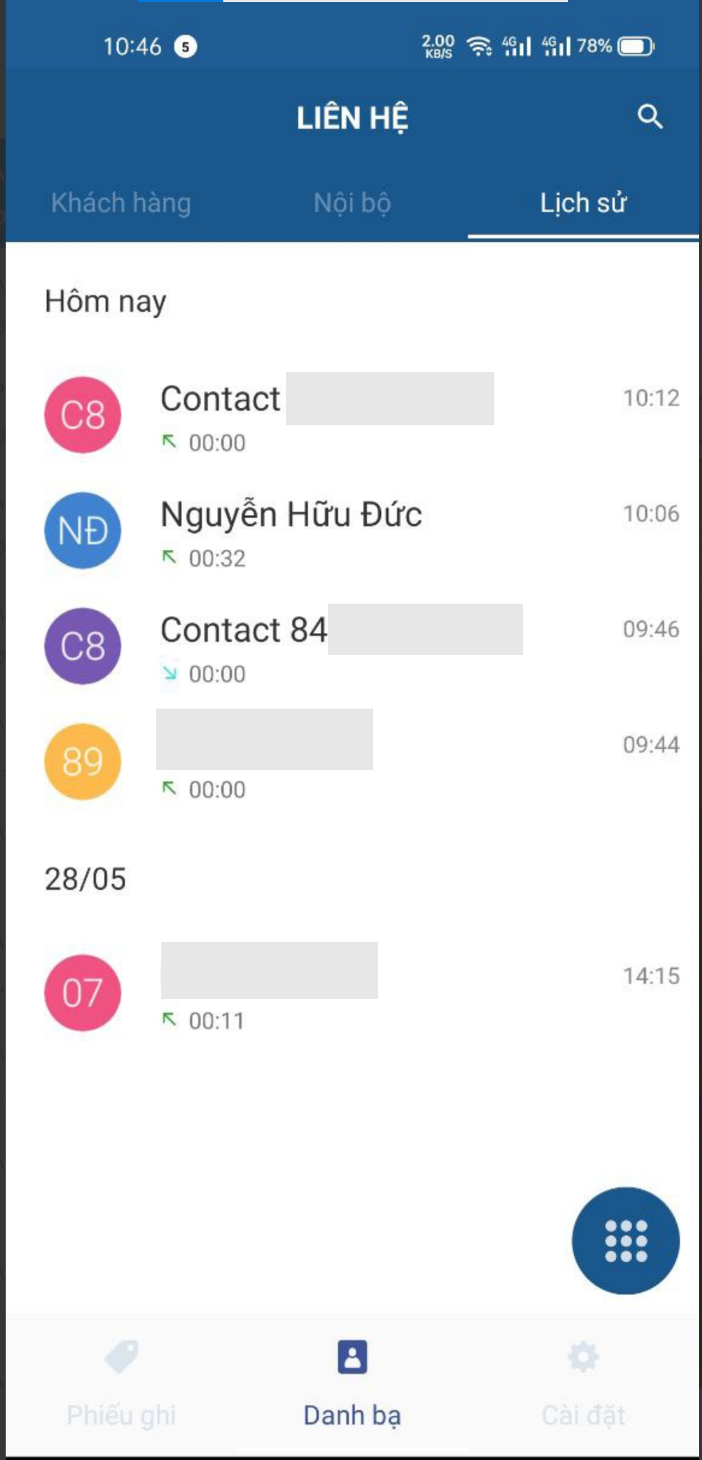 At the contact interface, users can view the customer list, internal contact list and call history, search by name or phone number for necessary contact information.