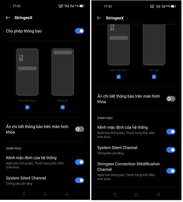 * **Step 3:** Turn on allow notifications. StringeeX needs to be allowed desktop notifications, screen lock, banner notifications. The features that need to be turned on are similar to those shown in the image. Depending on the device model, the options may vary:
