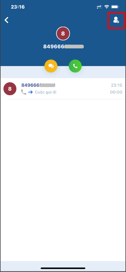 When selecting and opening a call, the user can view the details of that call including: call type (outbound, incoming call), time of call, call duration.