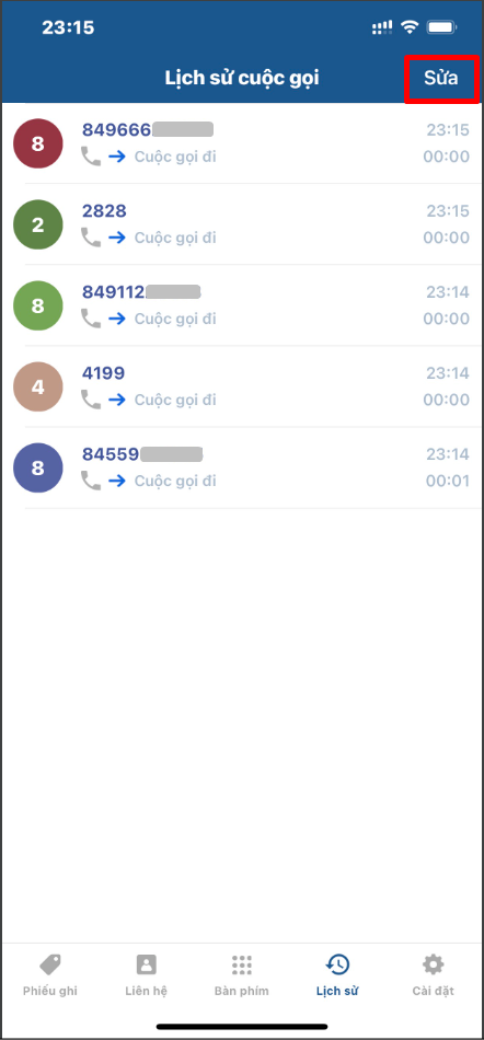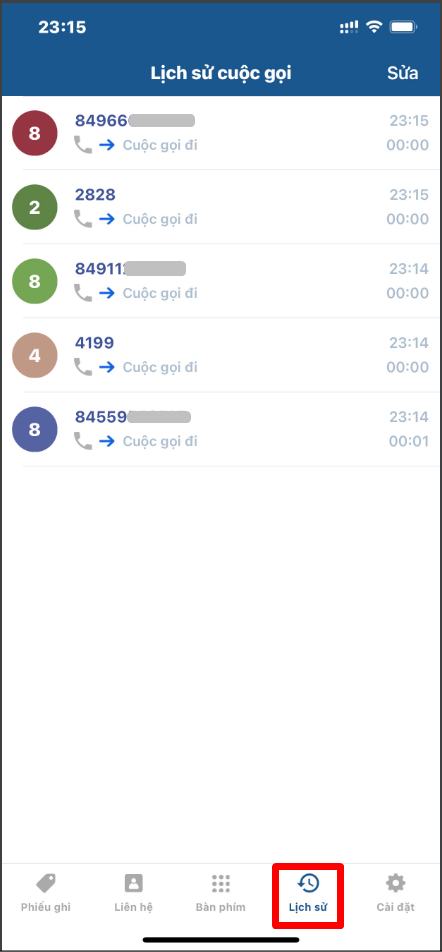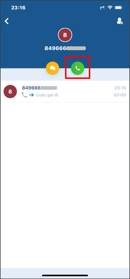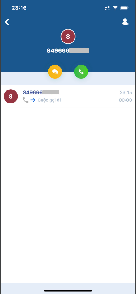 At the "History" screen, the user will see the entire call history (calling out, calling in) that has been made on the app.
