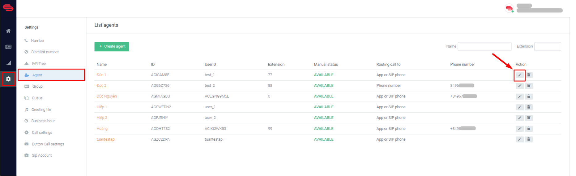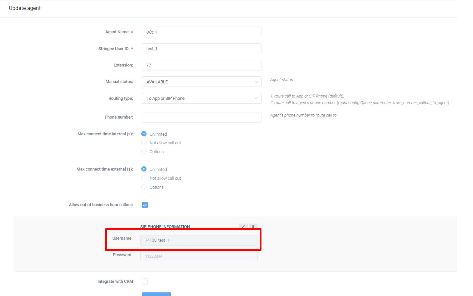 **Note:** Stringee has absolutely no information about the IP Phone login account because the login account is held, edited, and changed by the user.