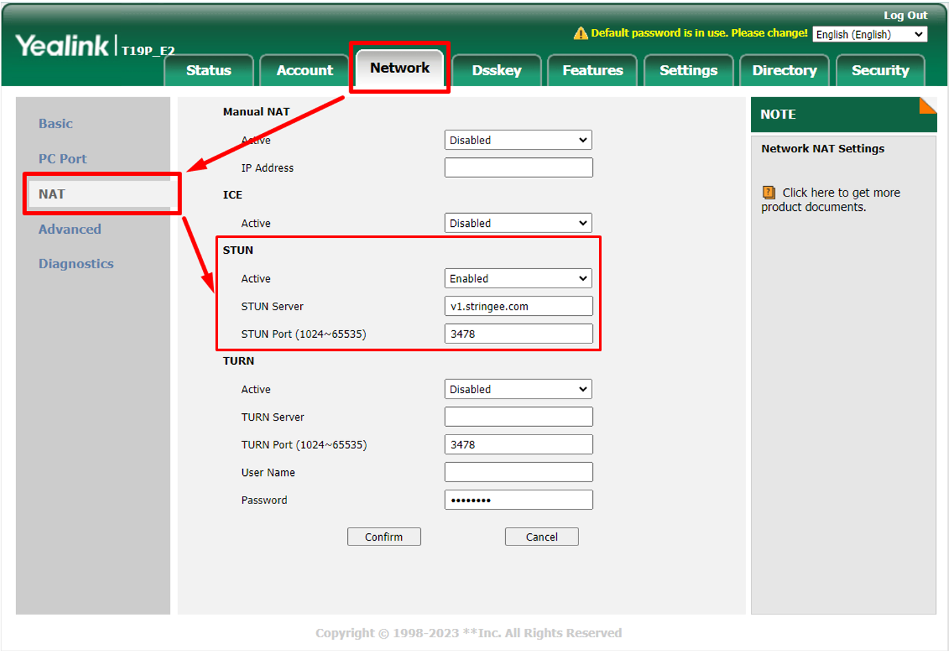 * **STUN NAT Traversal:** STUN configuration status results. This result will be returned after updating (apply). If the returned result is “TRUE” => the configuration is successful.