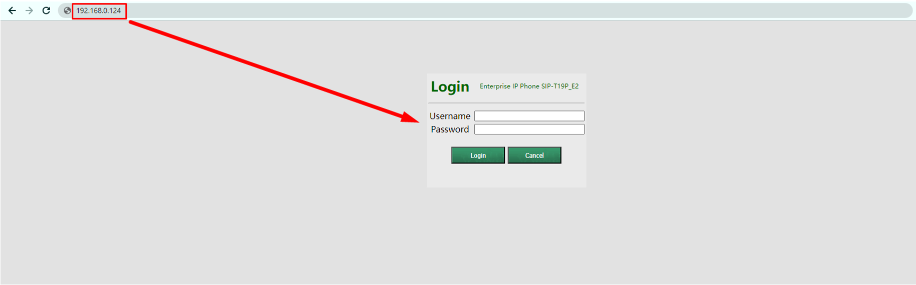 <figure><img src="https://content.gitbook.com/content/W1nWhVvoi55dxT8euy3M/blobs/k5PfH8JabECrnMSEPwar/image.png" alt=""><figcaption><p>Image 15: Log in to the IP address on the IP Phone device </p></figcaption></figure>