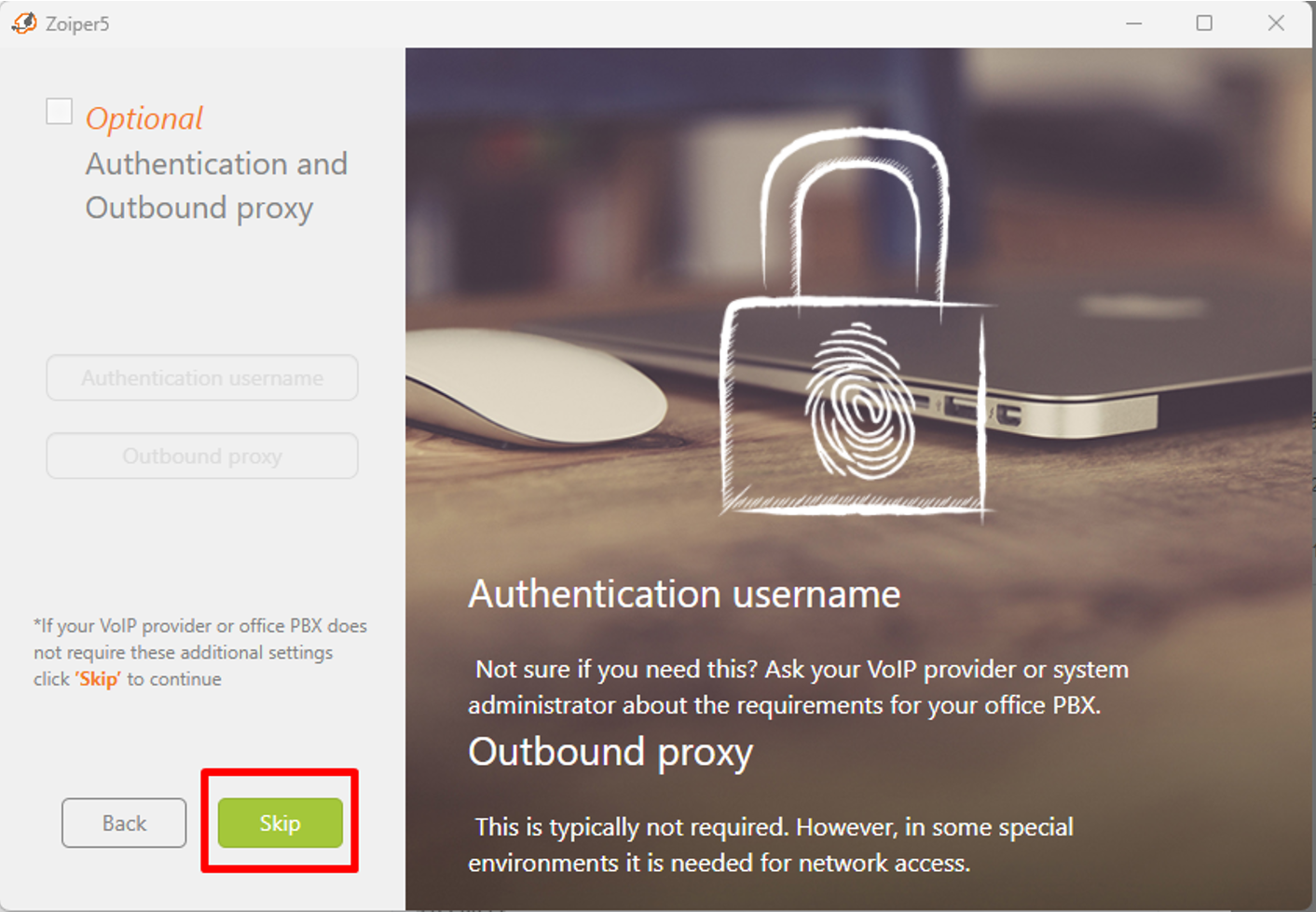 <figure><img src="https://content.gitbook.com/content/W1nWhVvoi55dxT8euy3M/blobs/316zreliAzxNkoNDwIln/image.png" alt=""><figcaption><p>Image 21: Log into the SIP account</p></figcaption></figure>