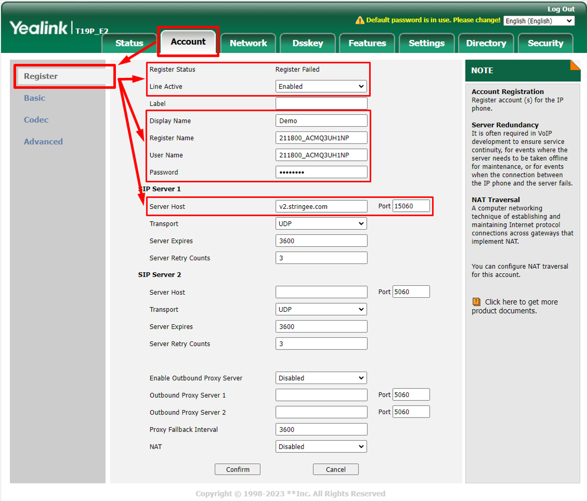 Normally, the login information of the IP Phone provider (IP Phone brand) will default to: