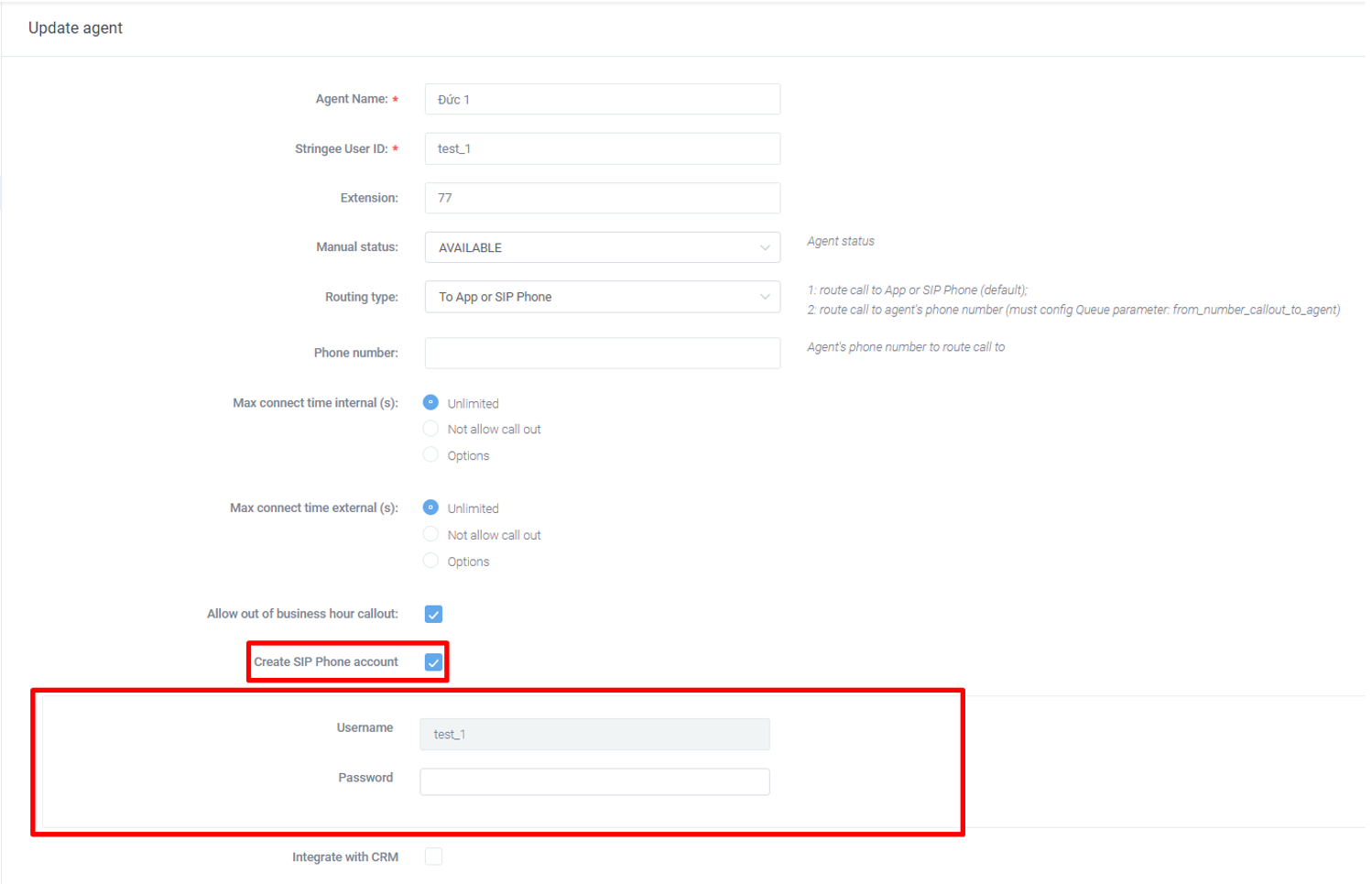 * **Password:** enter the [SIP account](#create-a-sip-phone-account-on-stringee) password.