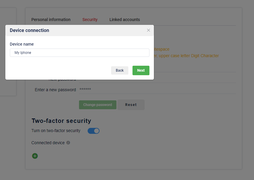 Enter the device name used for authentication (the device with the app that will generate the authentication code)