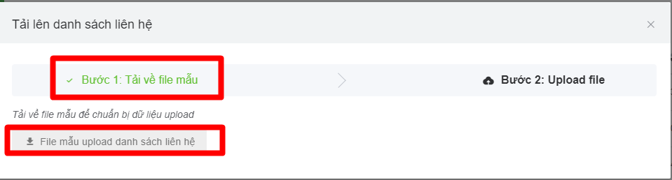 Upload liên hệ: upload liên hệ hàng loạt lên hệ thống bằng file excel. Tham khảo các bước upload liên hệ tại mục Cách upload liên hệ