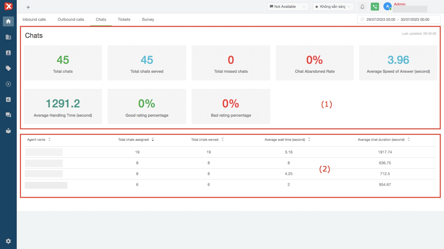 Good rating percentage: the percentage of total well-rated chats to total received chats.