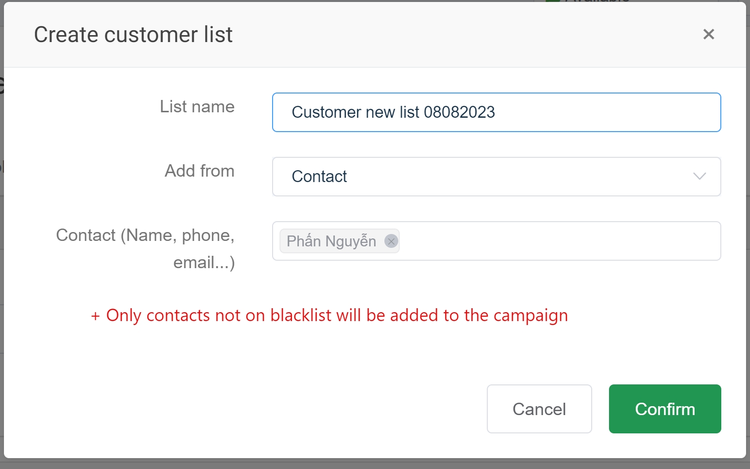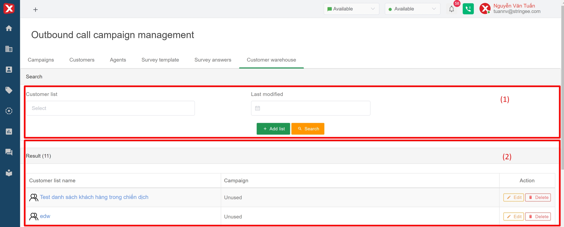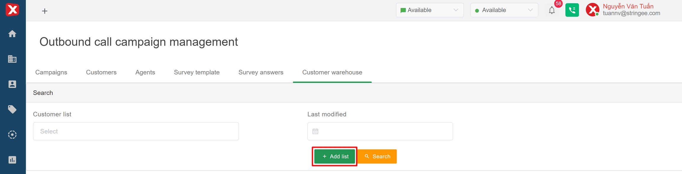 Add list: StringeeX supports customers to create a customer list (customer group) from an existing contact on the system or through the created contact filter (in advanced filter)